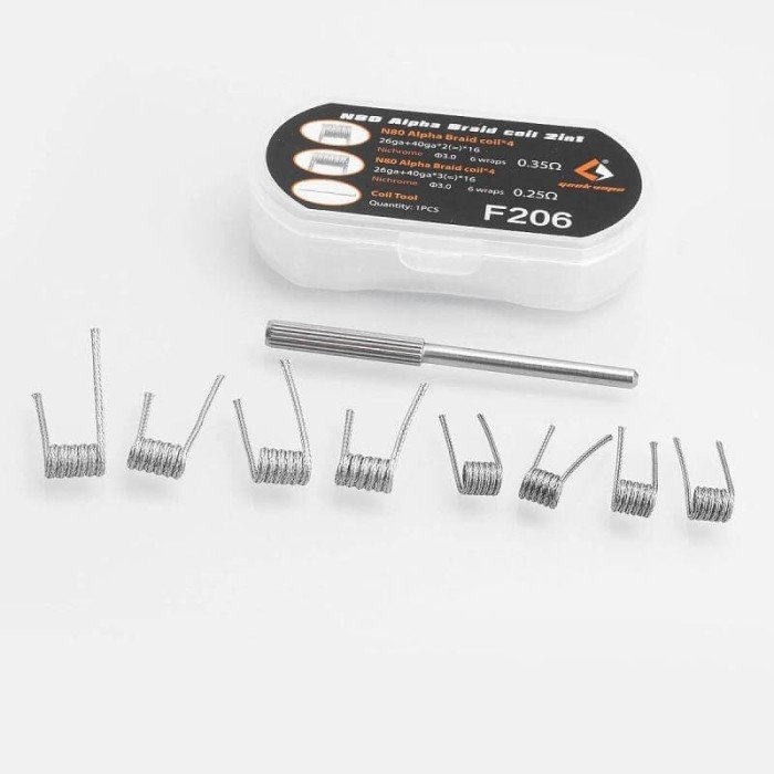 - 4 x N80 Alpha Braid Coil 26ga + 40ga*2(=)*16/0.35ohm, Φ3.0/6wraps